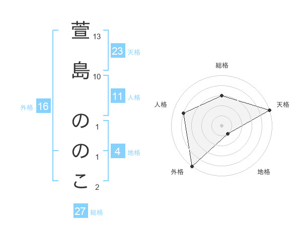 萱島 ののこさんの天格は23画の5点!
