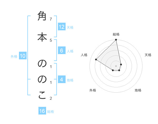 角本 ののこさんの天格は12画の1点!