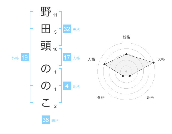 野田頭 ののこさんの天格は32画の5点!