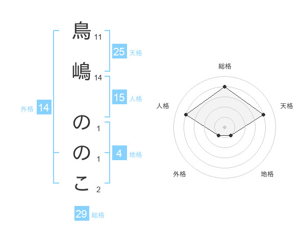 鳥嶋 ののこさんを姓名の画数から五運を鑑定