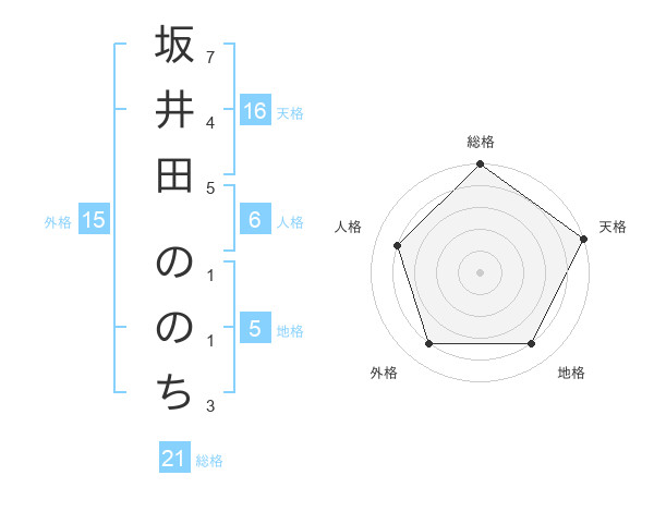坂井田 ののちさんを姓名の画数から五運を鑑定