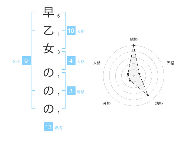 早乙女 のののさんの総格は13画の5点!