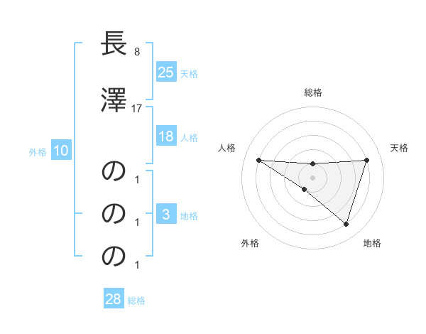 長澤 のののさんの天格は25画の4点!