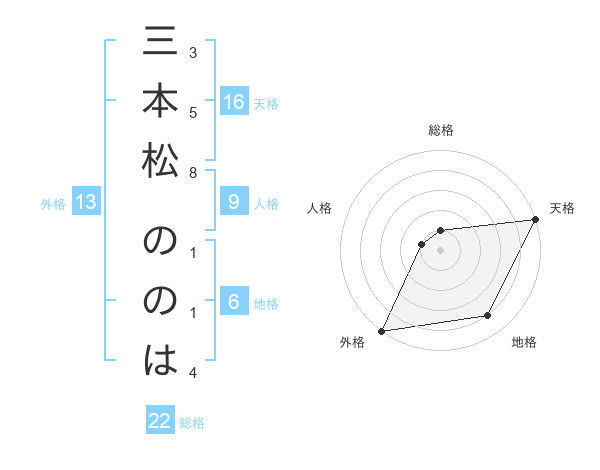 三本松 ののはさんを姓名の画数から五運を鑑定