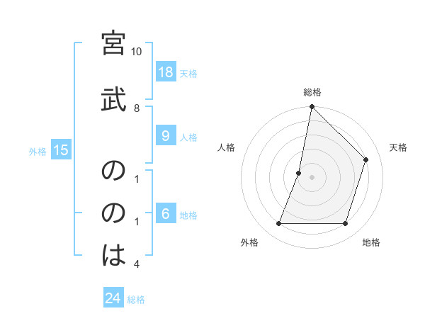 宮武 ののはさんを姓名の画数から五運を鑑定