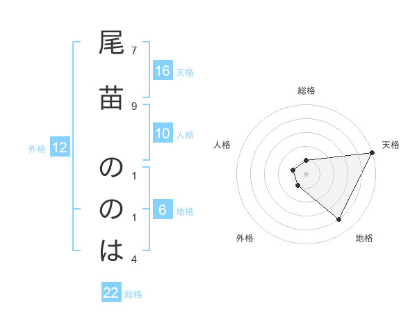 尾苗 ののはさんを姓名の画数から五運を鑑定