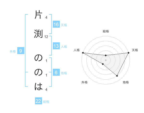 片渕 ののはさんの天格は16画の5点!