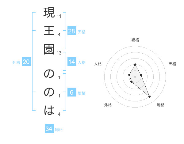 現王園 ののはさんの総格は34画の2点!