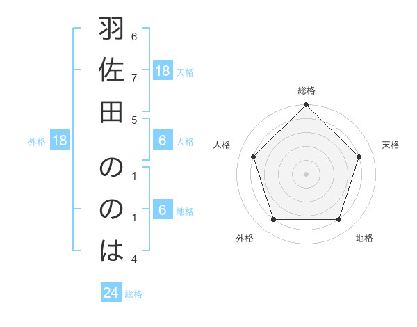 羽佐田 ののはさんを姓名の画数から五運を鑑定