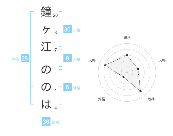 鐘ヶ江 ののはさんの天格は30画の2点