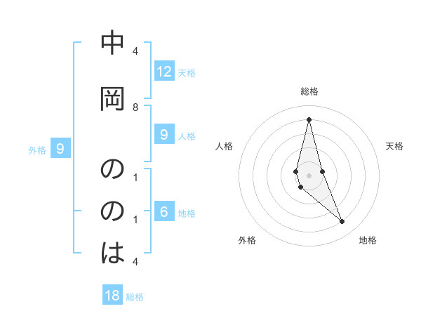中岡 ののはさんを姓名の画数から五運を鑑定
