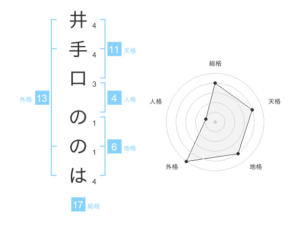 井手口 ののはさんを姓名の画数から五運を鑑定
