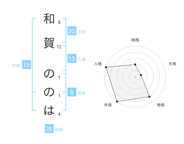 和賀 ののはさんを姓名の画数から五運を鑑定