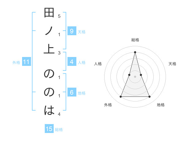 田ノ上 ののはさんを姓名の画数から五運を鑑定