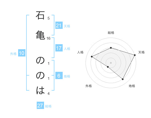 石亀 ののはさんの天格は21画の5点!