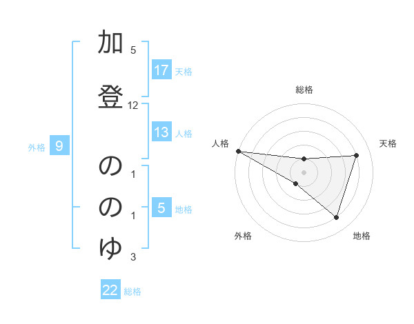 加登 ののゆさんを姓名の画数から五運を鑑定