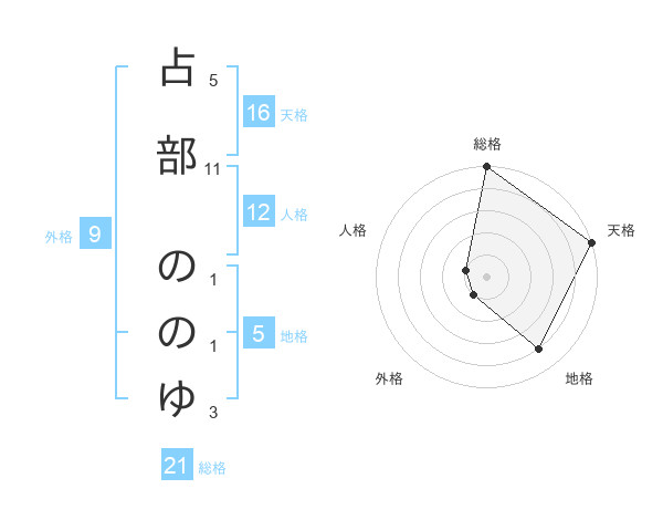 占部 ののゆさんを姓名の画数から五運を鑑定