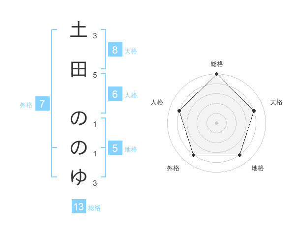 土田 ののゆさんを姓名の画数から五運を鑑定