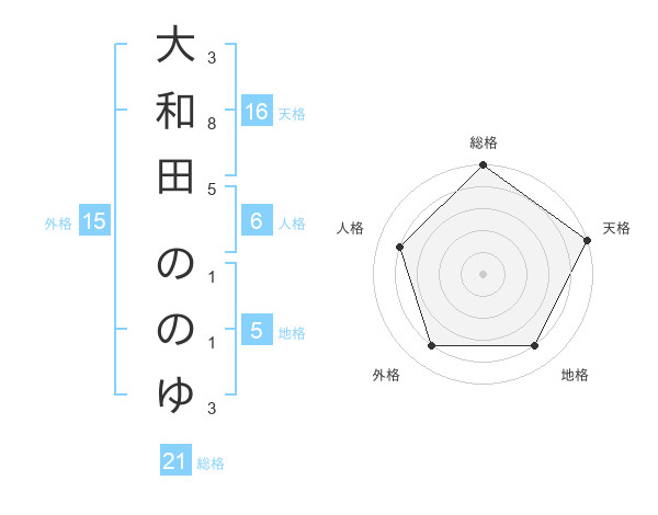 大和田 ののゆさんを姓名の画数から五運を鑑定
