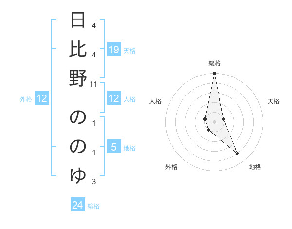 日比野 ののゆさんを姓名の画数から五運を鑑定