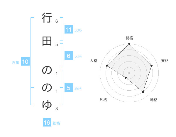 行田 ののゆさんの総格は16画の5点!