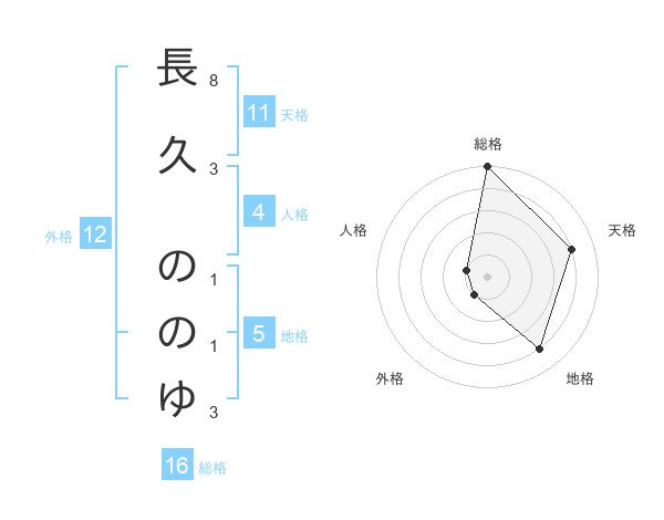 長久 ののゆさんを姓名の画数から五運を鑑定