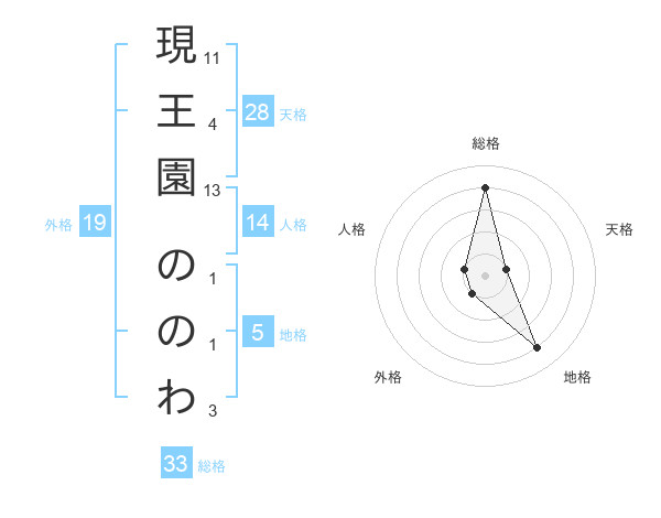 現王園 ののわさんを姓名の画数から五運を鑑定