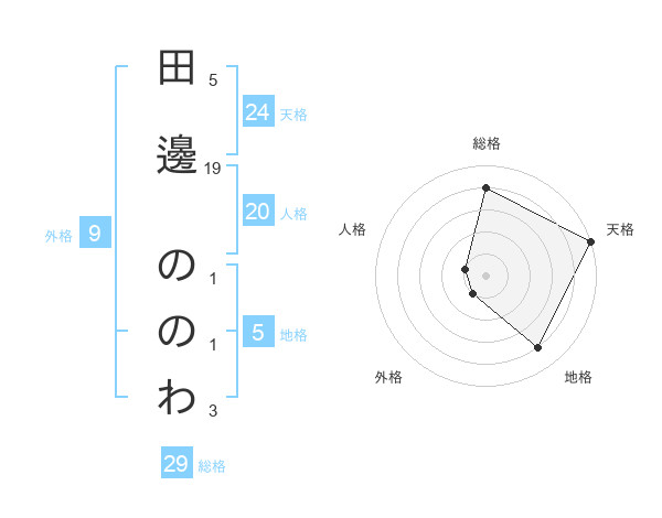 田邊 ののわさんを姓名の画数から五運を鑑定