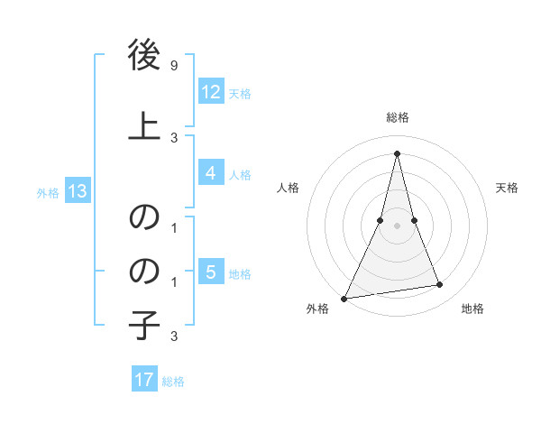 後上 のの子さんの総格は17画の4点!