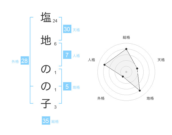 塩地 のの子さんを姓名の画数から五運を鑑定