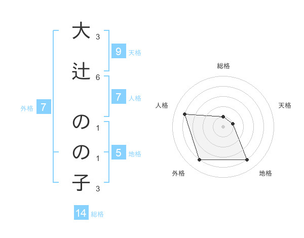 大辻 のの子さんを姓名の画数から五運を鑑定