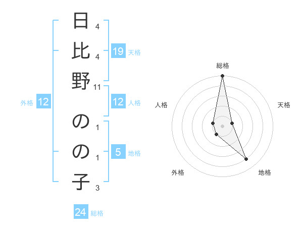 日比野 のの子さんを姓名の画数から五運を鑑定
