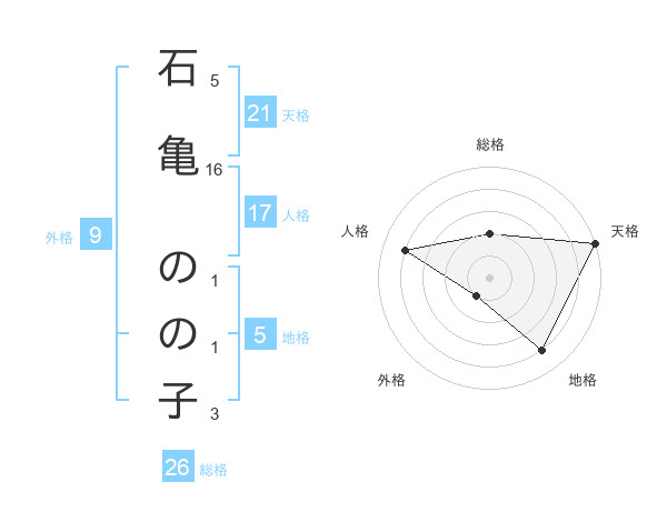 石亀 のの子さんを姓名の画数から五運を鑑定