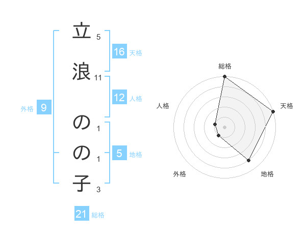 立浪 のの子さんを姓名の画数から五運を鑑定