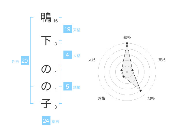 鴨下 のの子さんを姓名の画数から五運を鑑定