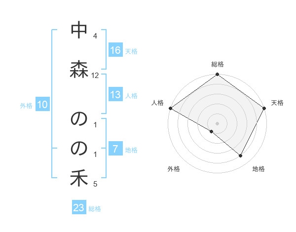 中森 のの禾さんの総格は23画の5点!