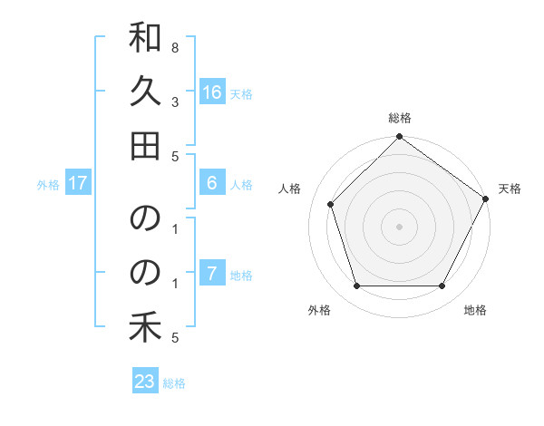 和久田 のの禾さんの総格は23画の5点!