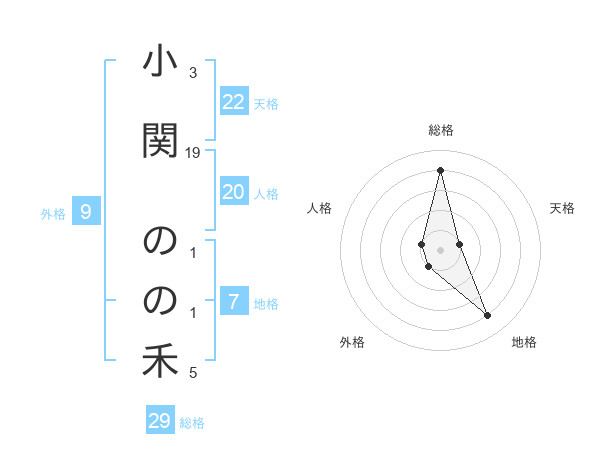 小関 のの禾さんを姓名の画数から五運を鑑定
