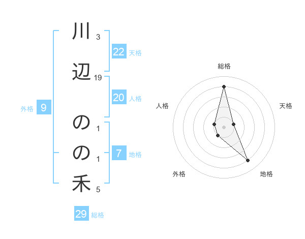川辺 のの禾さんの総格は29画の4点!