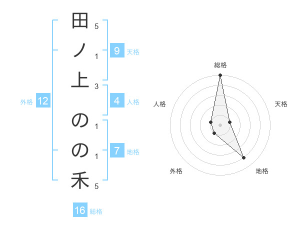 田ノ上 のの禾さんを姓名の画数から五運を鑑定