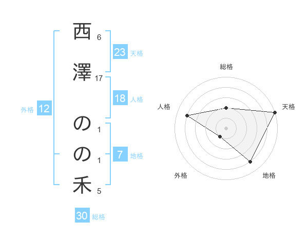 西澤 のの禾さんを姓名の画数から五運を鑑定