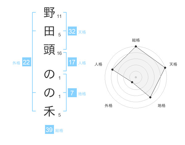 野田頭 のの禾さんを姓名の画数から五運を鑑定