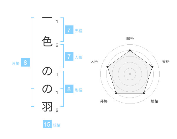 一色 のの羽さんの天格は7画の4点!