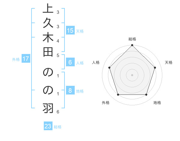 上久木田 のの羽さんを姓名の画数から五運を鑑定