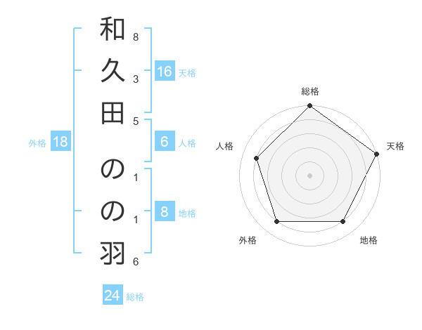 和久田 のの羽さんを姓名の画数から五運を鑑定