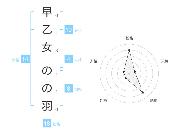 早乙女 のの羽さんの総格は18画の4点!