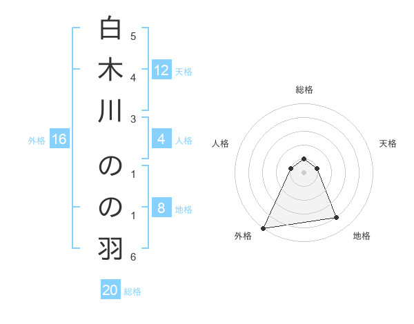 白木川 のの羽さんを姓名の画数から五運を鑑定