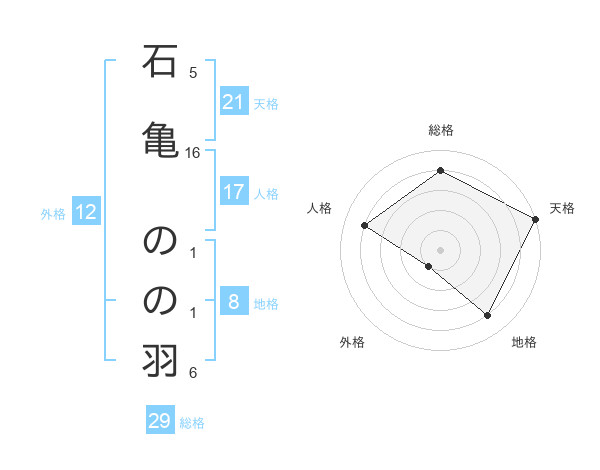 石亀 のの羽さんの総格は29画の4点!