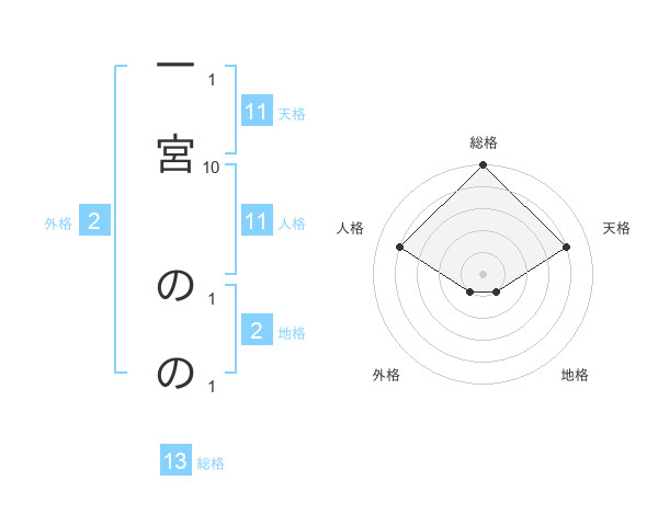 一宮 ののさんの総格は13画の5点!
