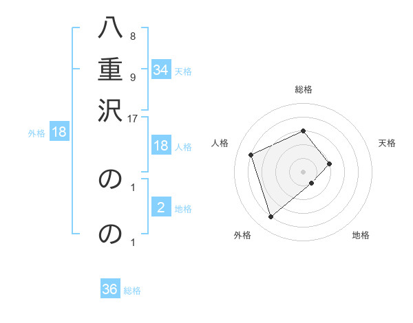 八重沢 ののさんの外格は18画の4点!